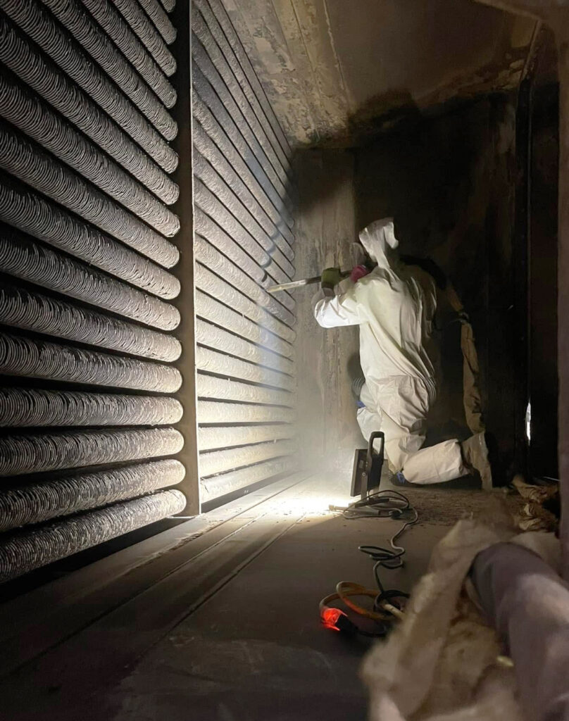 - In this 30’ long boiler, the build-up is restricting the heated air flow all of the way through the machine. Therefore, the machine is not running at 100 percent.